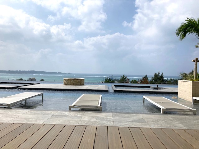 宿泊したお部屋から見えるインフィニティプールの全体図です。